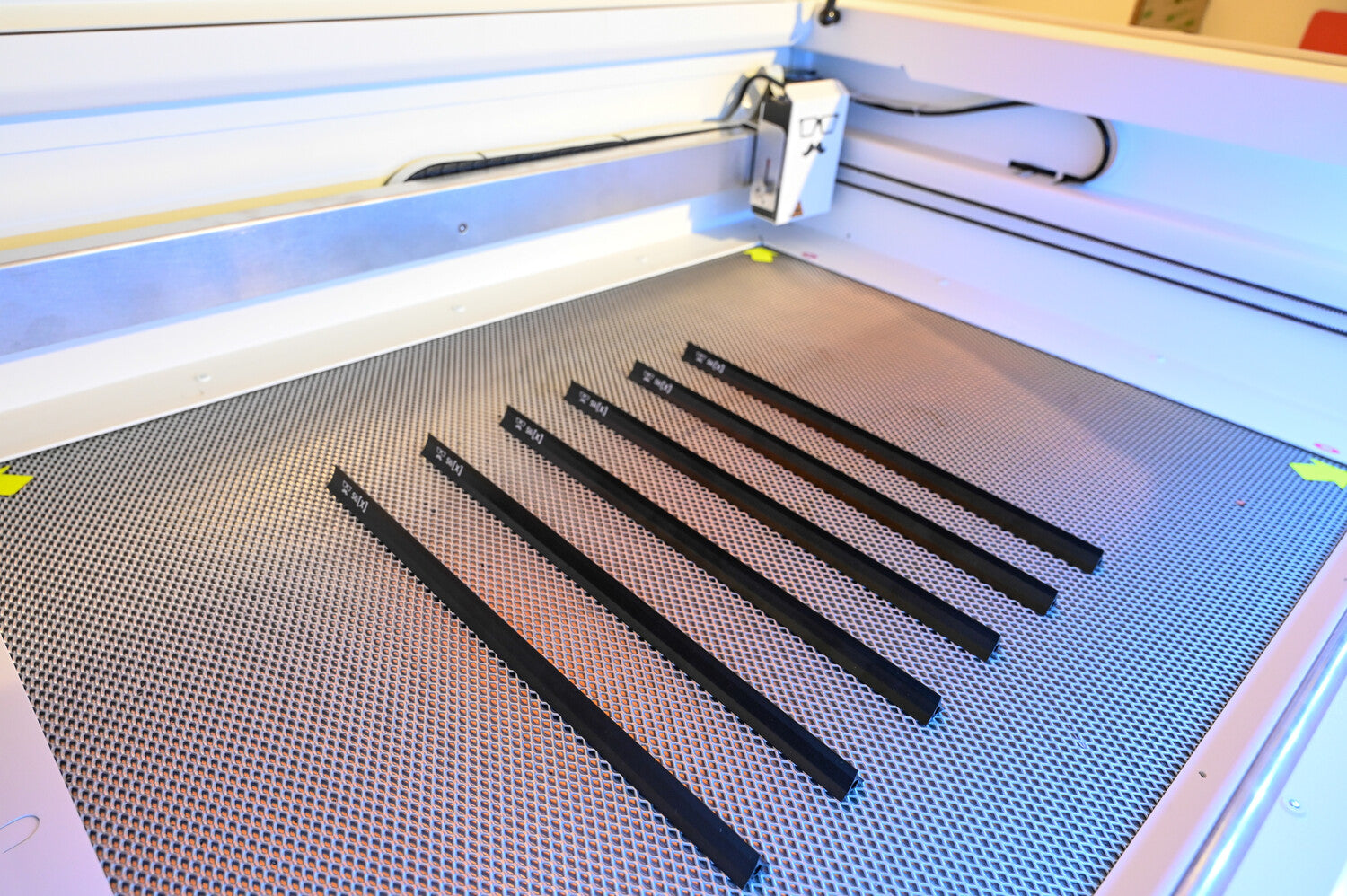 May we introduce? Our Mr Beam Cutting Sti[x] are brand new to the Mr Beam Shop! These triangular prism bars are perfect for use with our new [x] laser head and complement the magnets in use. Thanks to the prisms, you can now run cutting jobs that have multiple passes and contain many delicate objects. Since you can determine the position of the Sti[x] yourself, they are suitable for all material sizes.