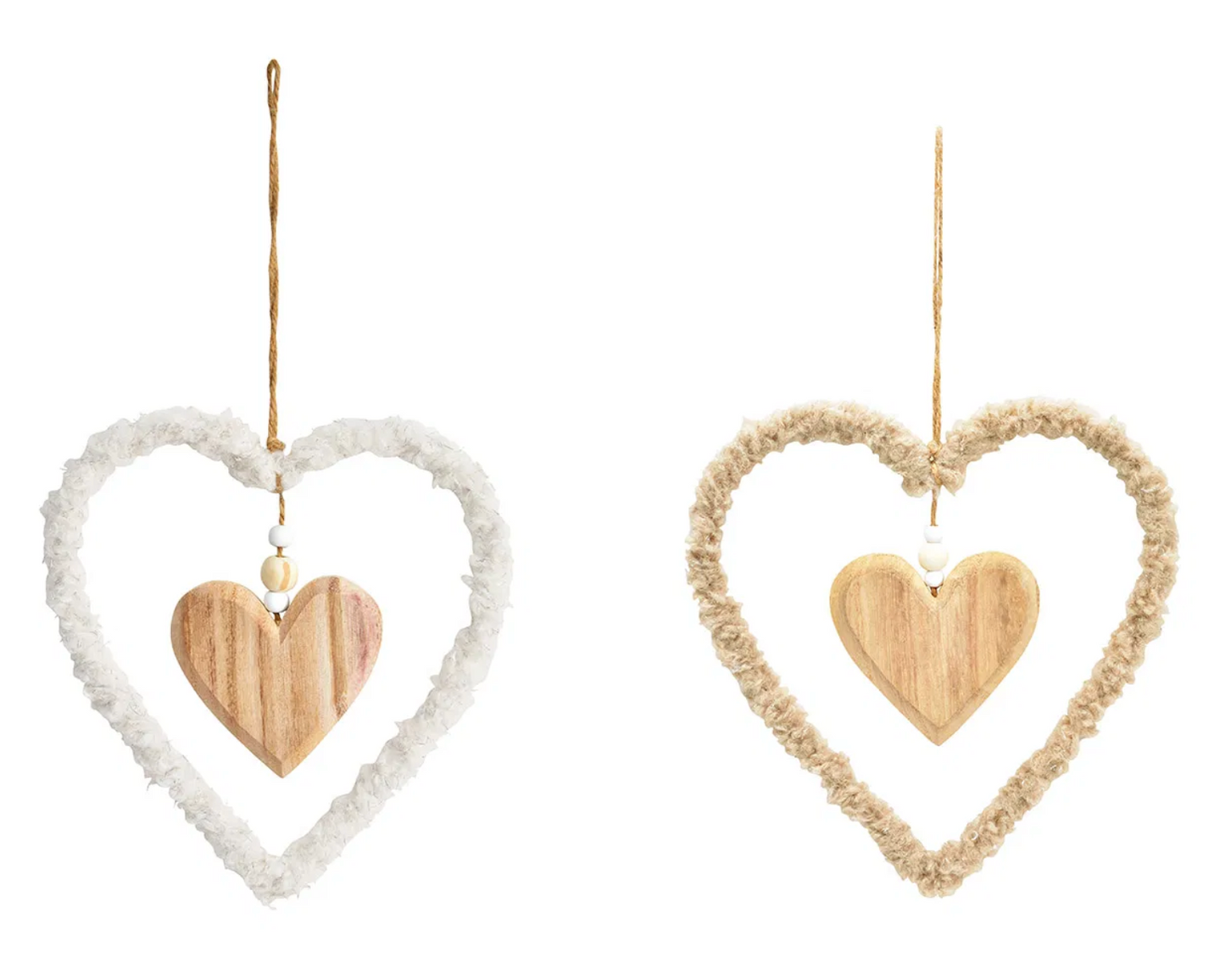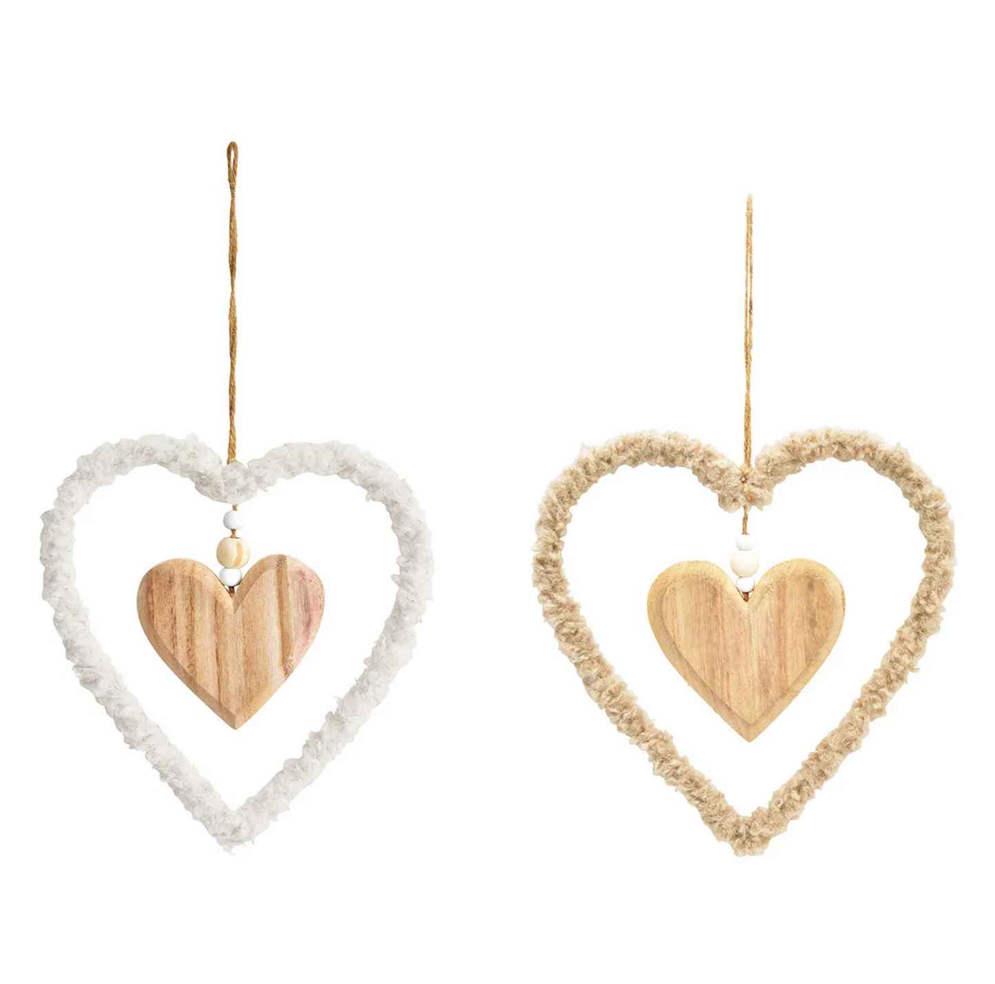 Add an extra dose of coziness to your home with these charming heart pendants made of wood and fabric in the natural colors of white and brown, available in two sizes . Whether as a lovely window decoration , a romantic eye-catcher on the wall, or a stylish accent on the shelf – these heart-shaped pendants create a warm, homely atmosphere.