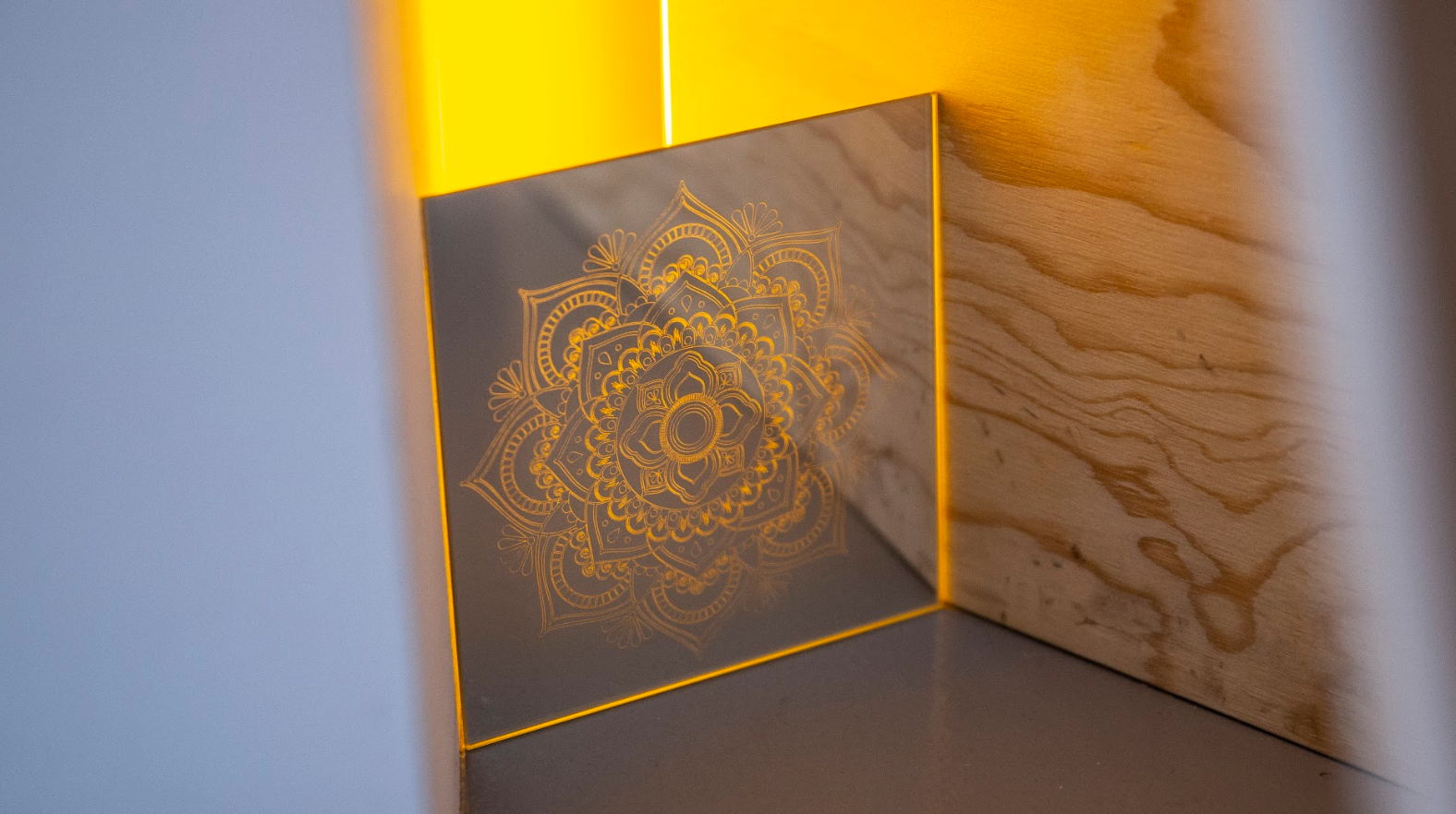 With the mirror tiles in size 15x15 cm, you achieve great results when engraving. Note, however, that you only Back of the mirror tiles engraving with the MR Beam. The laser file must be created mirror.