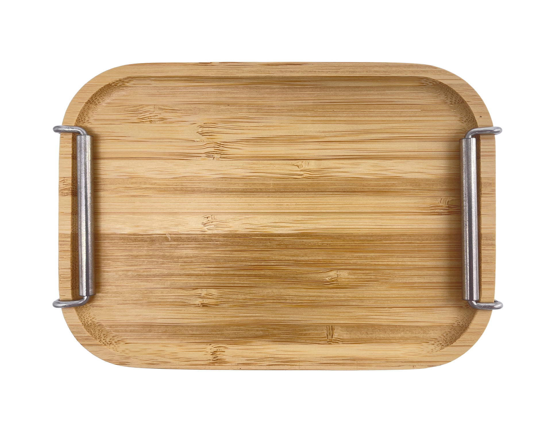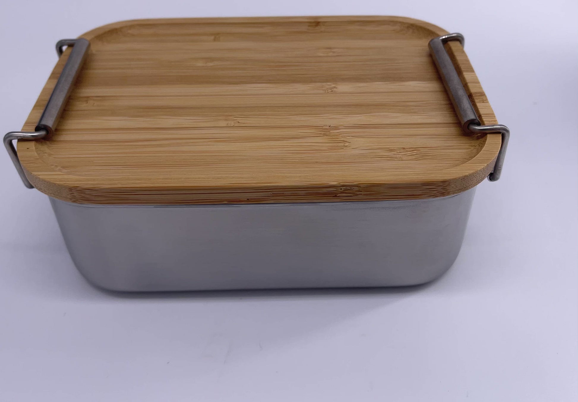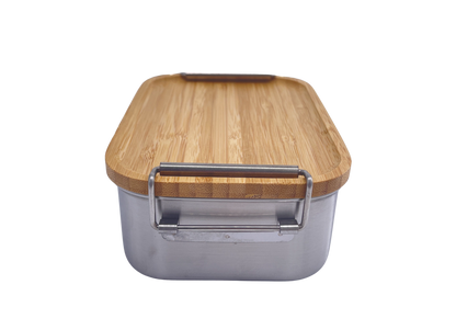 Mr Beam Stainless Steel Lunch Box/Bread Box with Bamboo Engravable Lid, 17x12x6.5cm
