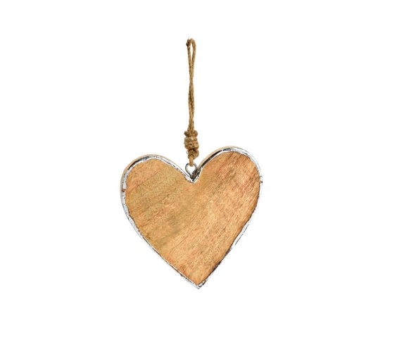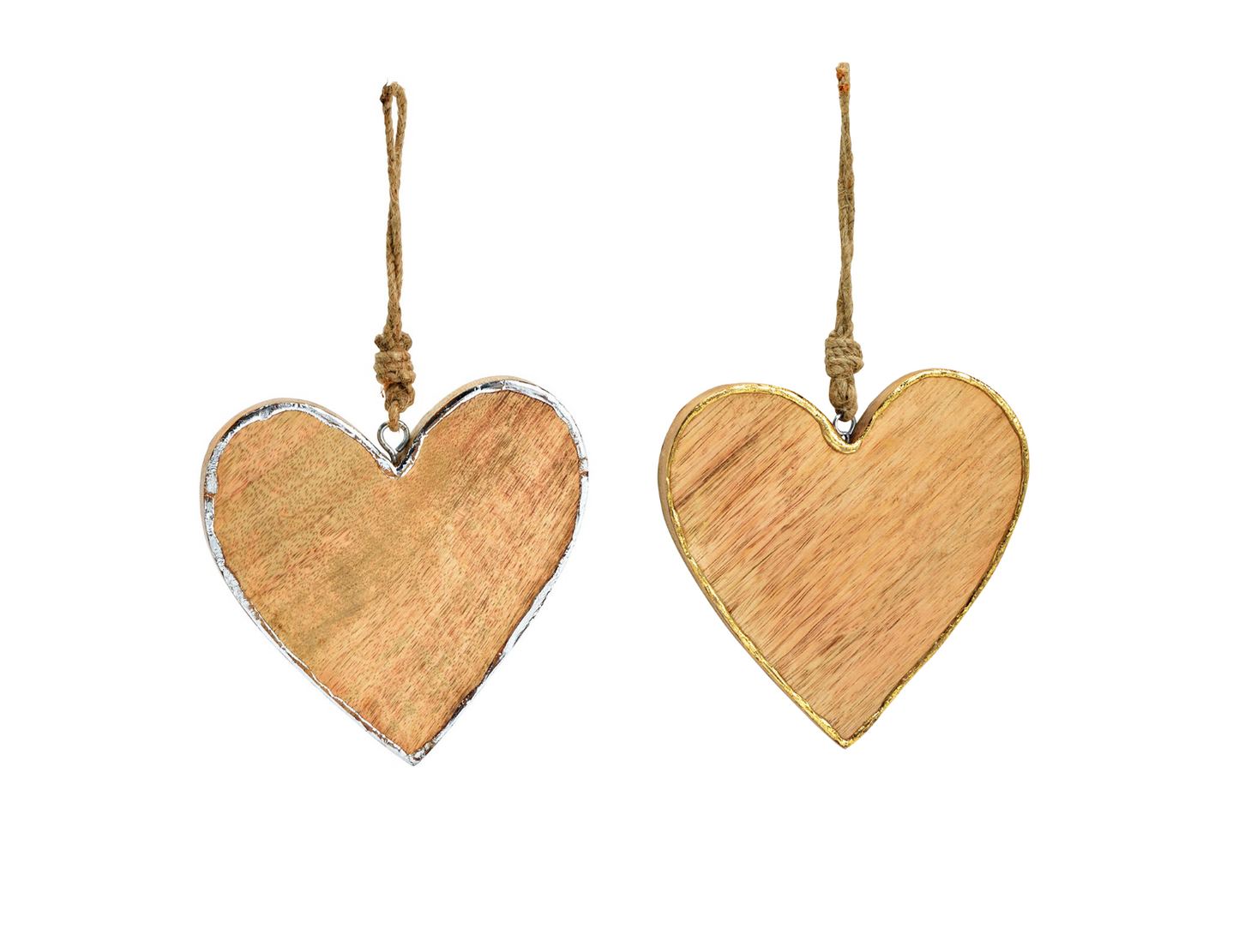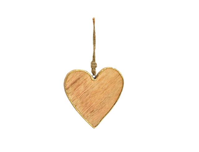 Mr Beam heart with pendant, mango wood, 15x15x1cm, gold/silver