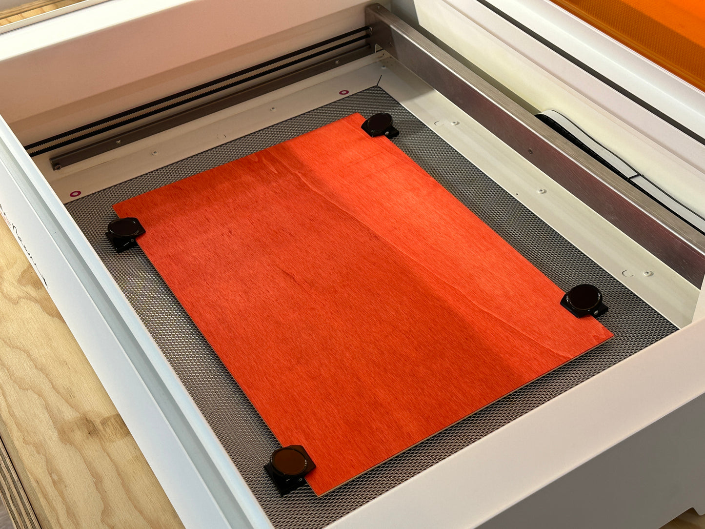 Note: Please set up your Mr Beam cutting file so that the inner contours are cut first. When placing the magnets, make sure that the laser head does not move over the magnet. If the magnet protrudes, you can prop up the magnet with foam rubber/felt so that it is at the same height as your material.