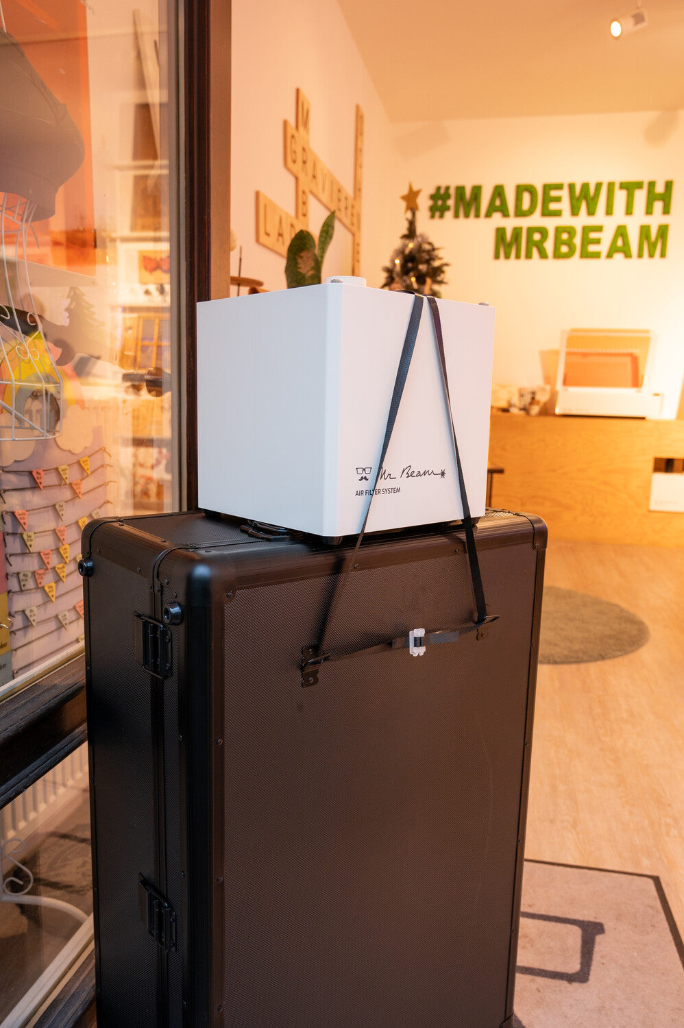 Another highlight: You can attach and transport the Mr Beam Air Filter II to the carrying case. This makes the case not just a protective enclosure, but a practical companion for your entire laser cutter setup. Ideal if you're on the move and want to have everything at your fingertips.