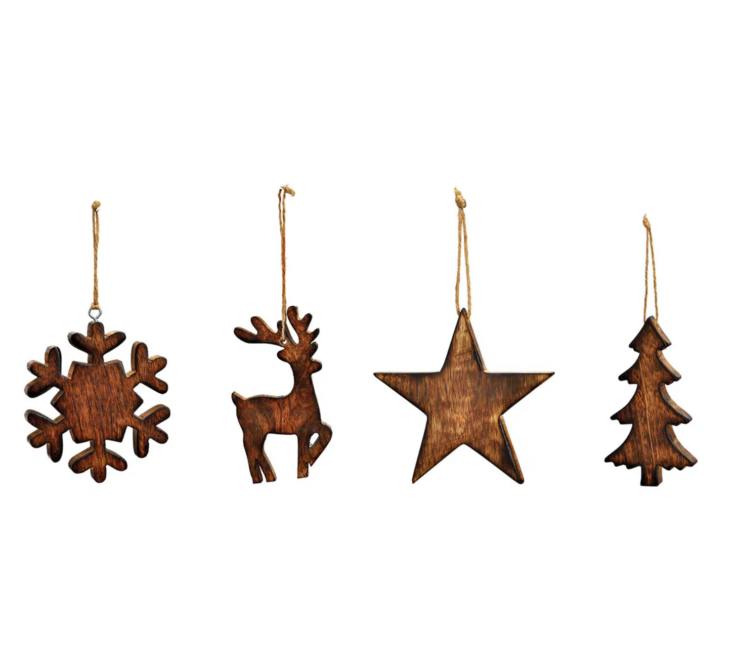 Mr Beam Weihnachtsanhänger (Stern/Baum/Hirsch/Schneeflocke), Mangoholz, 12x12x1cm